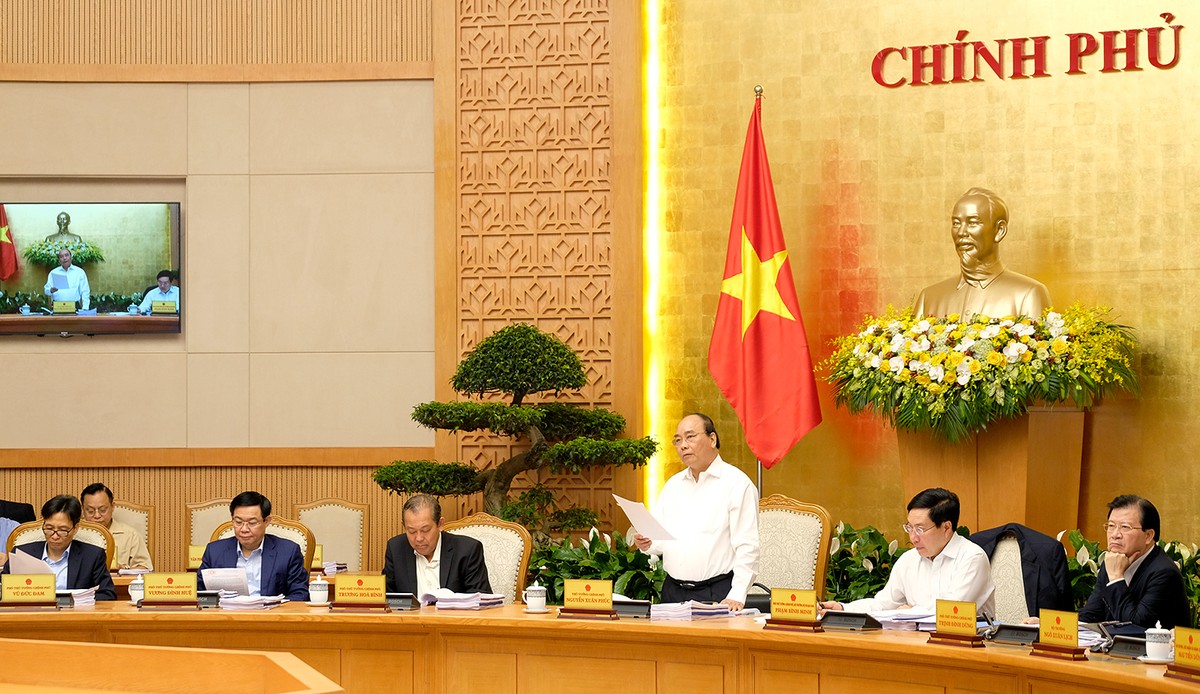 Thủ tướng Nguyễn Xuân Phúc phát biểu kết luận phiên họp Chính phủ thường kỳ tháng 3/2018. Ảnh: VGP/Quang Hiếu