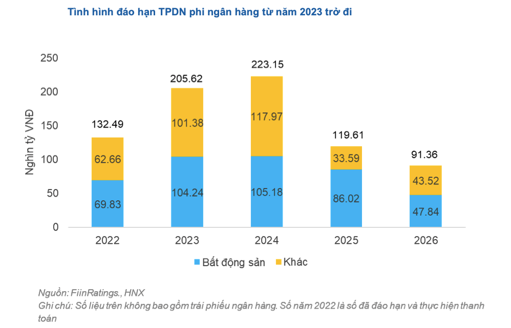 Trong biểu dữ liệu trên, FiinRatings từng định vị rõ khái niệm “phi ngân hàng” để phân loại nguồn hàng, cơ cấu đáo hạn hoặc áp lực đáo hạn trên thị trường TPDN thời gian tới. Bởi tổ chức này từng nêu quan điểm loại trừ TPDN do các NHTM phát hành khi nhận diện những rủi ro tiềm ẩn.