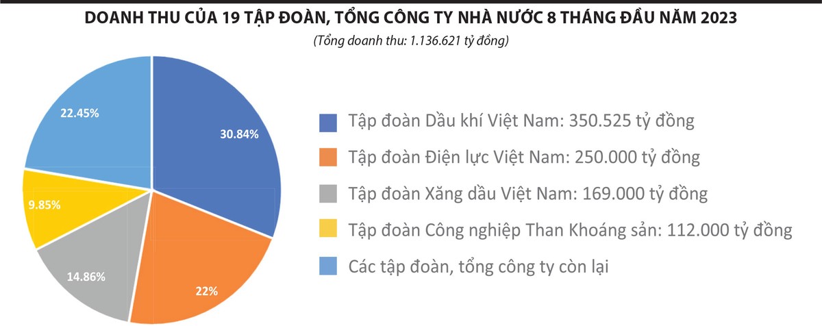 Dự kiến cả năm 2023, tổng doanh thu của toàn khu vực doanh nghiệp nhà nước đạt 1.416.880 tỷ đồng, tăng 4% so với kế hoạch đề ra; tổng lãi trước thuế đạt 117.388 tỷ đồng, tăng 9% so với kế hoạch đặt ra. Trong đó, các doanh nghiệp phát sinh lỗ khoảng 41.666 tỷ đồng, chủ yếu tập trung ở khối doanh nghiệp trung ương như EVN lỗ phát sinh 37.062 tỷ đồng, Vietnam Airlines lỗ 4.515 tỷ đồng.