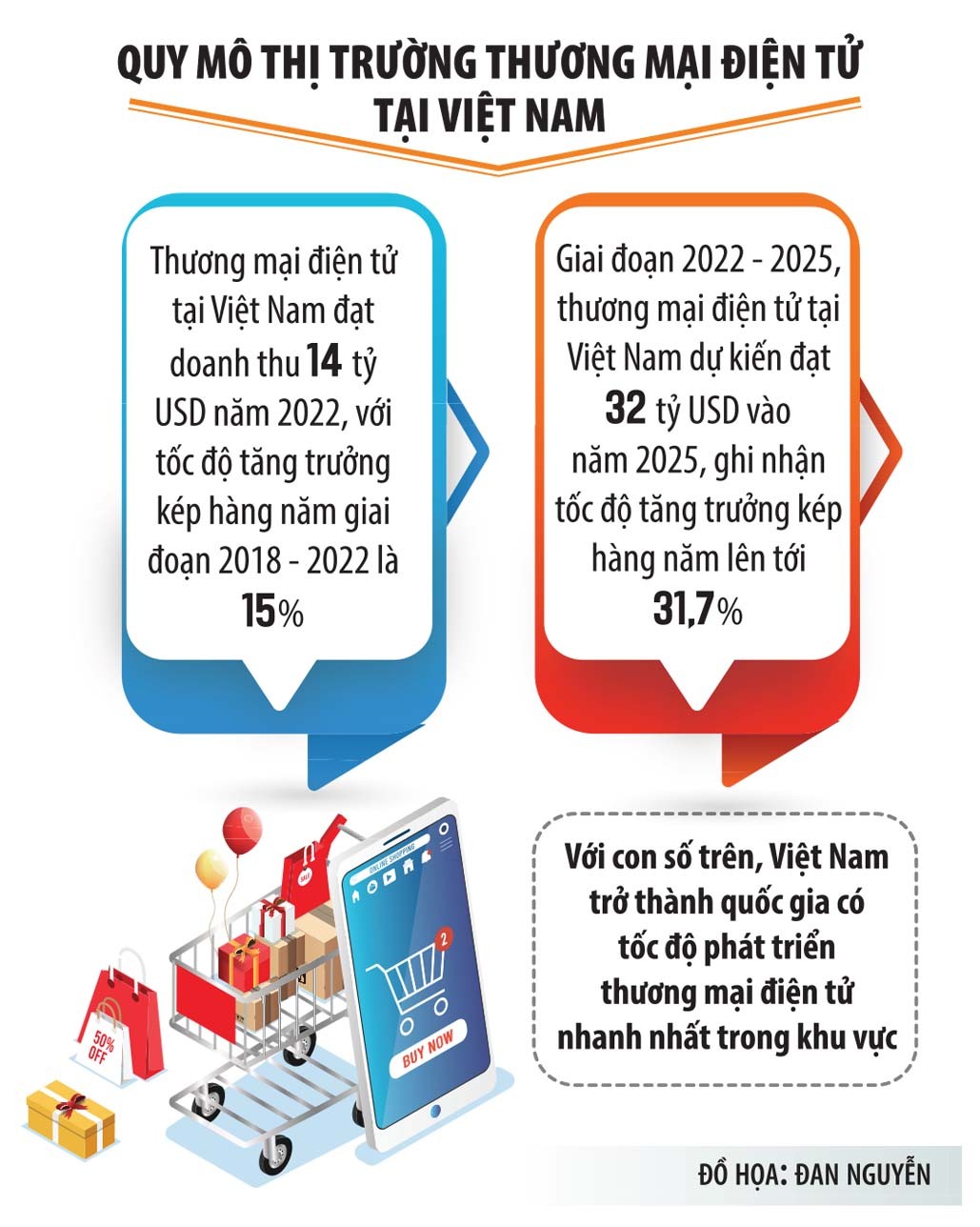 Theo Bộ Công thương, hoạt động thương mại trong nước năm 2023 đã khai thác rất hiệu quả sức mua của thị trường, đạt mức tăng trưởng vượt trội so với mức tăng trưởng chung của nền kinh tế. Nhiều doanh nghiệp tăng trưởng đột phá nhờ ứng dụng thương mại điện tử. Năm 2023, quy mô thị trường thương mại điện tử bán lẻ Việt Nam ước đạt 20,5 tỷ USD, chiếm 8% doanh thu hàng hóa và dịch vụ tiêu dùng của cả nước, đạt tốc độ tăng trưởng khoảng 25%, được xếp vào nhóm 10 quốc gia có tốc độ tăng trưởng thương mại điện tử hàng đầu thế giới.
