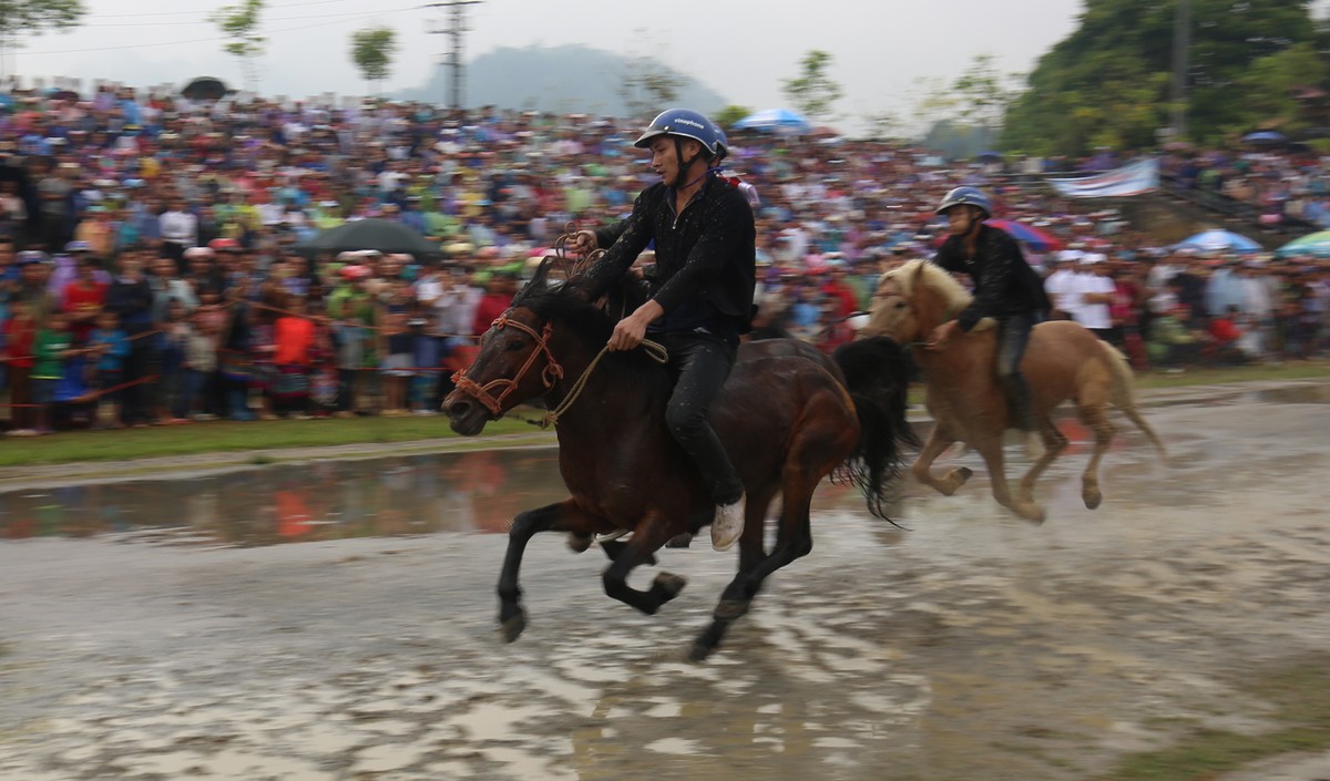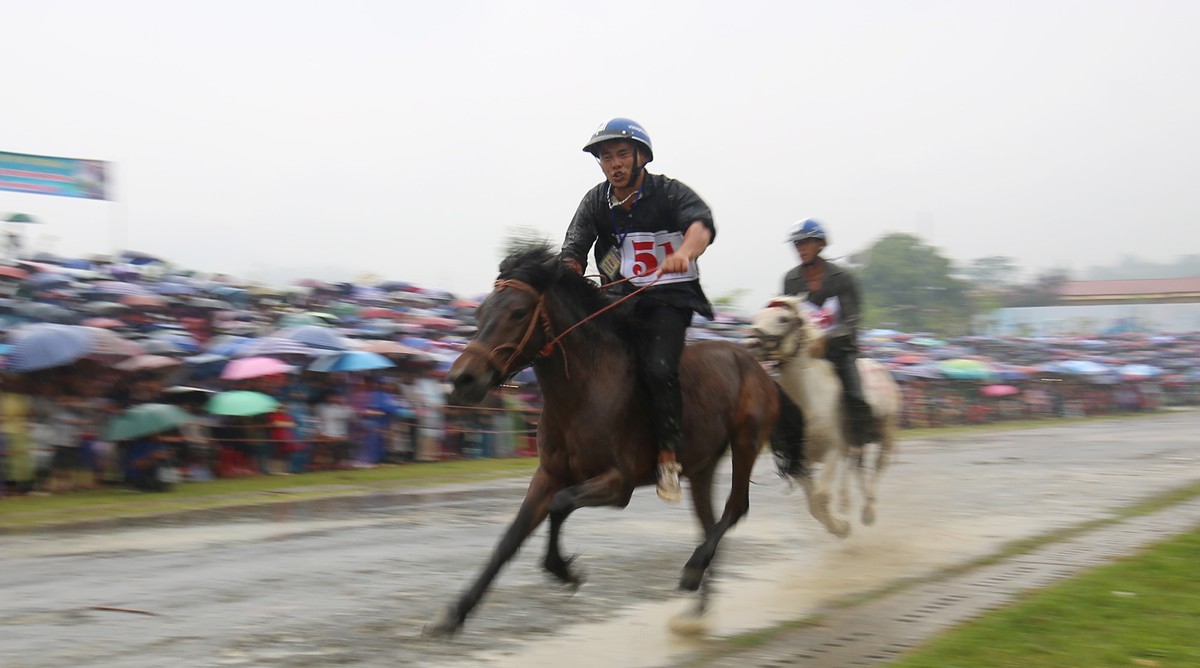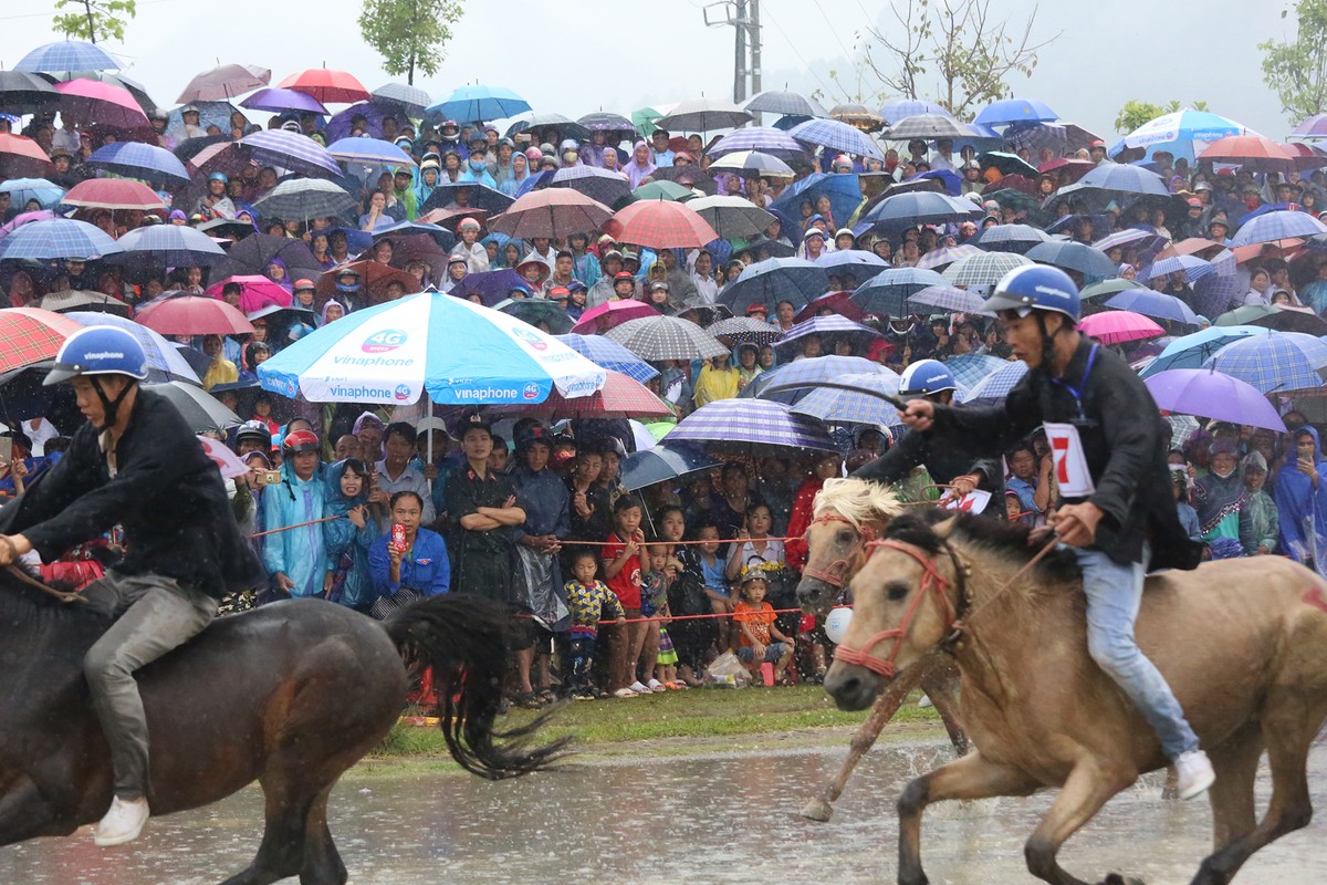 Mặc dù thời tiết Bắc Hà mưa to, ngay từ sáng sớm, đông đảo khán giả trong và ngoài tỉnh, du khách nước ngoài đã đội mưa để có mặt tại sân vận động huyện Bắc Hà cổ vũ cho các nài ngựa.