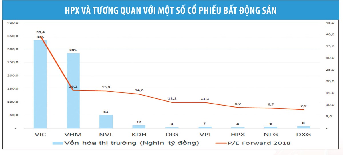 Theo thông tin chính thức, 150 triệu cổ phiếu HPX sẽ có phiên giao dịch đầu tiên trên sàn HOSE vào ngày 24/7 với giá tham chiếu 26.800 đồng/cổ phiếu, tương ứng định giá Công ty ở mức 4.020 tỷ đồng. Tại mức giá tham chiếu chào sàn, hệ số P/E tính trên lợi nhuận kế hoạch năm 2018 (P/E forward) của HPX chưa đến 9 lần, khá hấp dẫn so với mặt bằng chung của nhóm các cổ phiếu bất động sản có cùng quy mô.