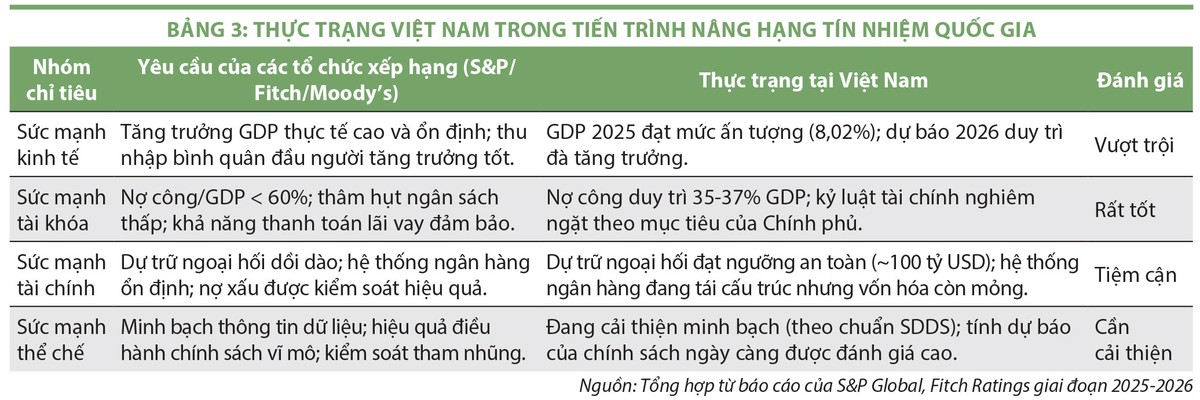Để đánh giá chi tiết tiến trình này, cần đối chiếu thực trạng của Việt Nam với bộ tiêu chí khắt khe của các tổ chức xếp hạng quốc tế (xem Bảng 3).