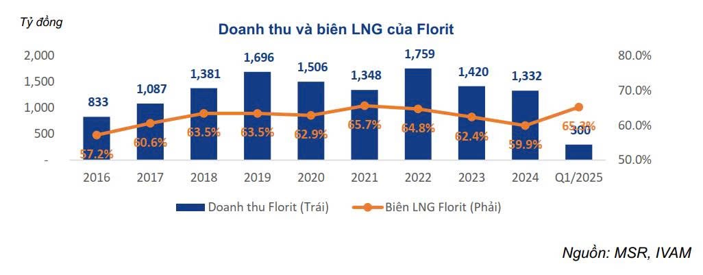 Bước sang năm 2025, mảng florit tiếp tục khẳng định vị thế lợi nhuận mạnh mẽ với biên gộp đạt 65,3%. Giá bán florit trên thế giới được điều chỉnh tăng 4,8%, hưởng lợi từ chính sách siết chặt xuất khẩu florit của Trung Quốc. Mặc dù doanh thu từ florit chỉ chiếm 9,3% tổng doanh thu năm 2024, nhưng lại đóng góp tới 89,5% tổng lợi nhuận gộp của MSR nhờ biên cao và chi phí đầu vào ổn định.