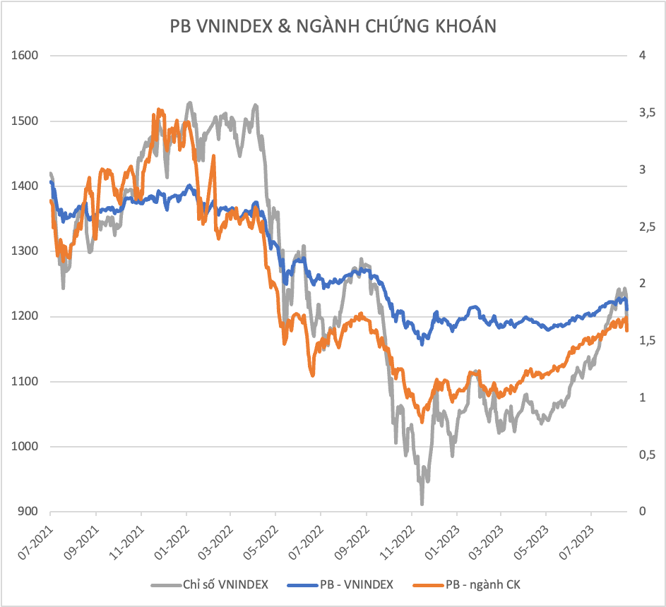 Cũng bởi sự kỳ vọng này, cộng thêm hoạt động cho vay margin được đẩy mạnh hơn (nhờ điều kiện thị trường tốt lên), nhóm cổ phiếu chứng khoán đã phản ánh ngay qua diễn biến tăng giá ấn tượng trong suốt giai đoạn thị trường hồi phục tốt từ cuối tháng 5 đến nay. Thực tế lợi nhuận quý 2/2023 của nhiều CTCK cải thiện đáng kể so với quý 1/2023 ở hầu hết các mảng hoạt động kinh doanh.