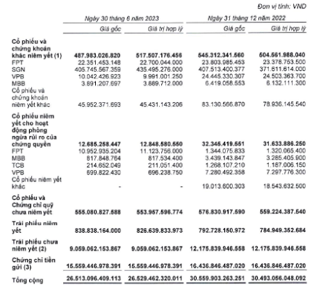 | Danh mục đầu tư của HSC đến 30/6/2023. |