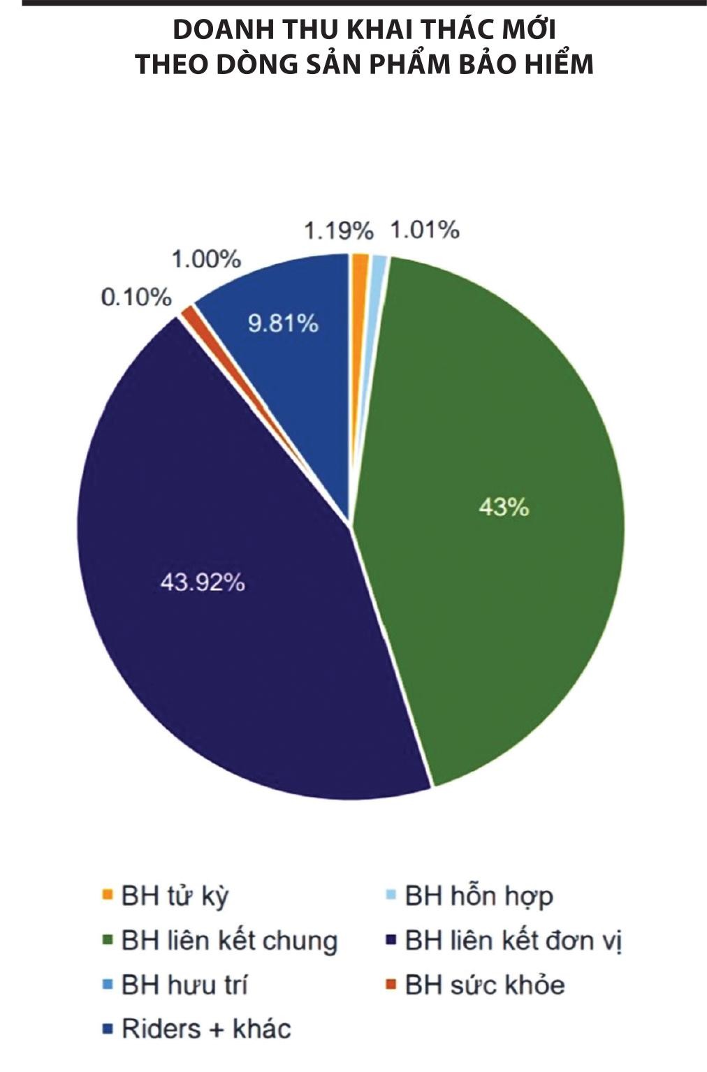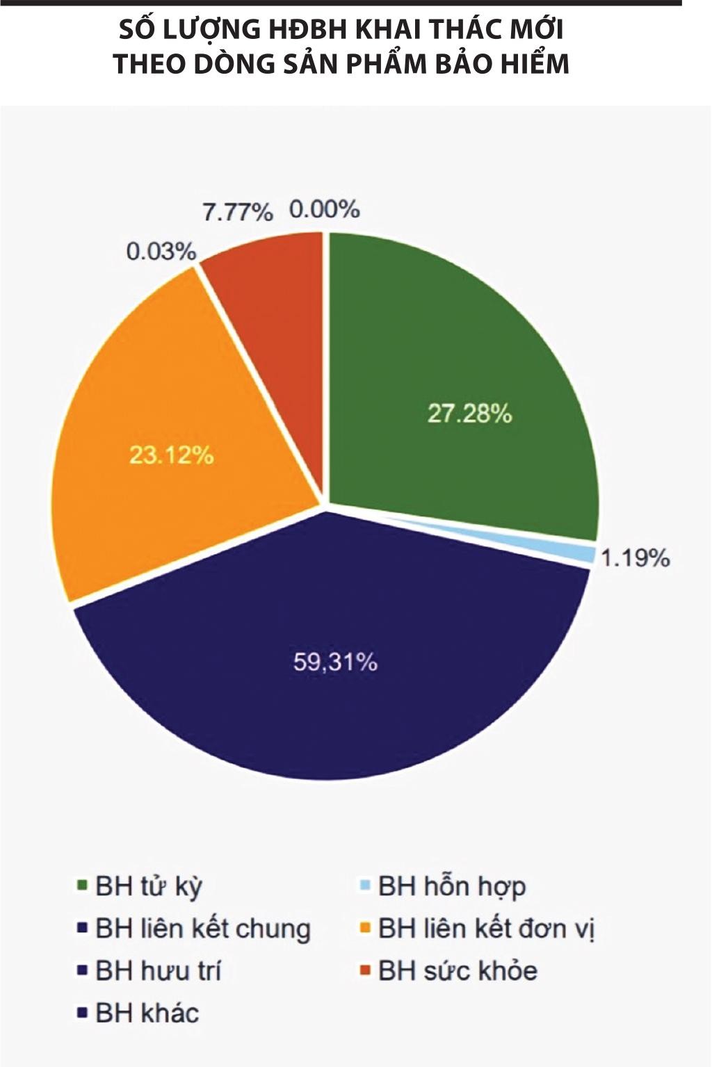 Tính chung tổng số hợp đồng còn hiệu lực trong cùng thời điểm, thị trường có khoảng 13,3 triệu hợp đồng, trong đó bảo hiểm liên kết chung chiếm tỷ lệ 51%, bảo hiểm liên kết đơn vị 8%, bảo hiểm tử kỳ 11%, bảo hiểm hỗn hợp 26% và bảo hiểm sức khỏe 3,5%.