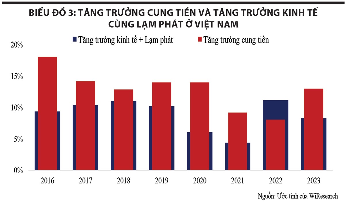 Tăng trưởng cung tiền từ 5,5% trong năm 2022 lên khoảng 15% trong năm 2023 có thể được giải thích qua nhiều yếu tố, như nỗ lực thúc đẩy tăng trưởng kinh tế, linh hoạt kích thích kinh tế khi lạm phát được kiểm soát.