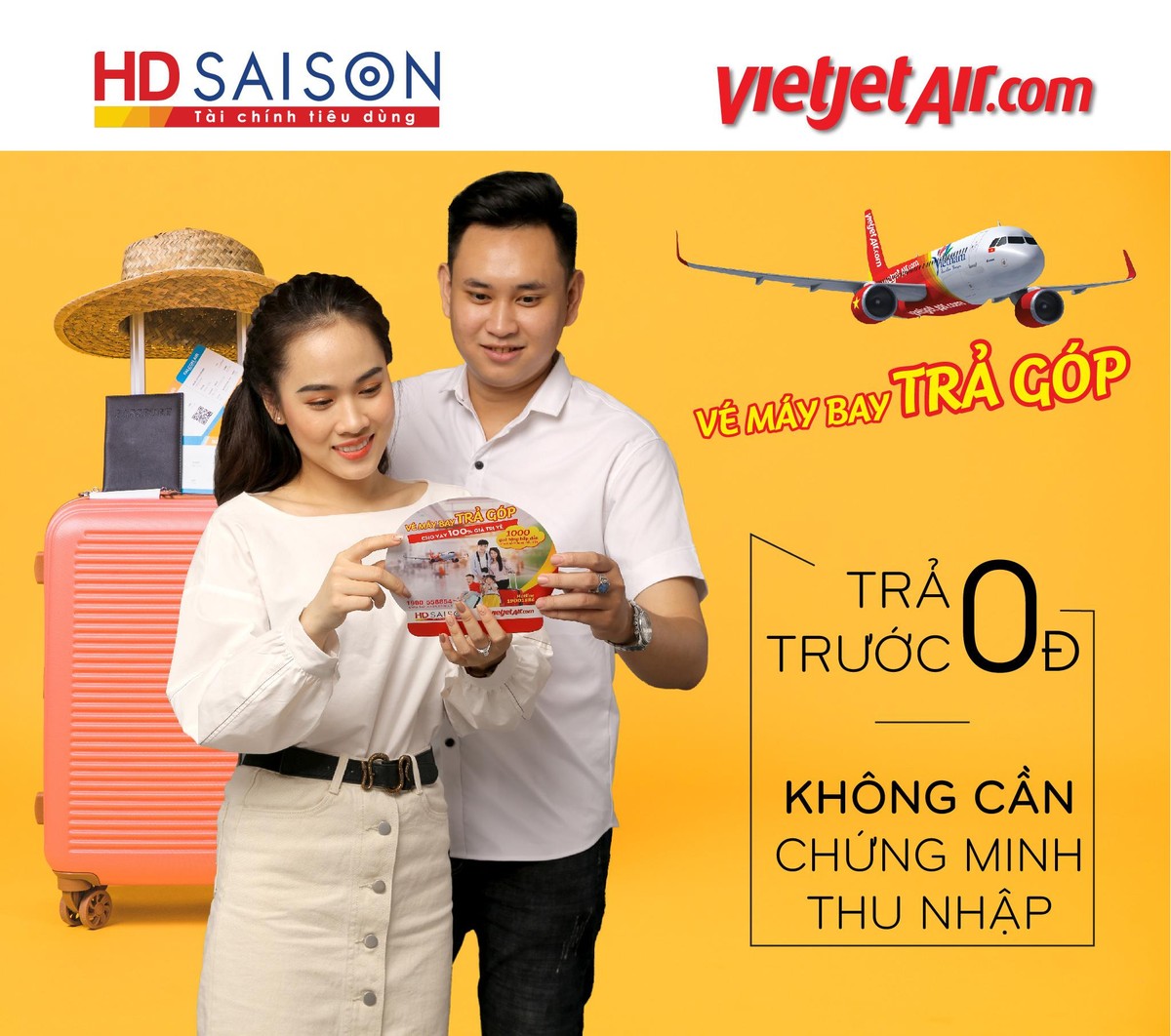Nắm bắt được điều này, từ năm 2019 HD SAISON đã cùng Vietjet triển khai dịch vụ trả góp vé máy bay Vietjet trong đó khách hàng không cần trả trước mà có thể được hỗ trợ tài chính để mua vé máy bay Vietjet với tổng giá vé lên đến 15 triệu đồng.