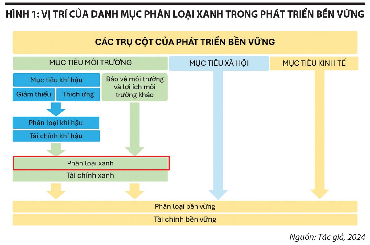 Nhìn chung, danh mục phân loại xanh là danh mục phân loại các dự án có mục tiêu bảo vệ môi trường hoặc mang lại lợi ích về môi trường được cấp tín dụng xanh, phát hành trái phiếu xanh gắn với các tiêu chí và yêu cầu về kỹ thuật cụ thể để đảm bảo mục tiêu bảo vệ môi trường, ứng phó với biến đổi khí hậu. Danh mục phân loại xanh là một trụ cột quan trọng của danh mục phân loại bền vững (xem Hình 1).