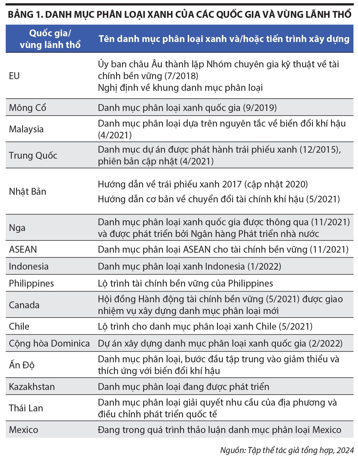 Nhằm hỗ trợ cho thị trường tiềm năng và ý nghĩa này, nhiều tổ chức của khu vực, quốc gia đã xây dựng và ban hành danh mục phân loại xanh, bao gồm các dự án hoặc hoạt động đầu tư kèm theo các tiêu chí về môi trường để giúp nhận diện được mức độ đáp ứng yêu cầu, góp phần vận hành thị trường tài chính xanh minh bạch, công bằng và hiệu quả.
