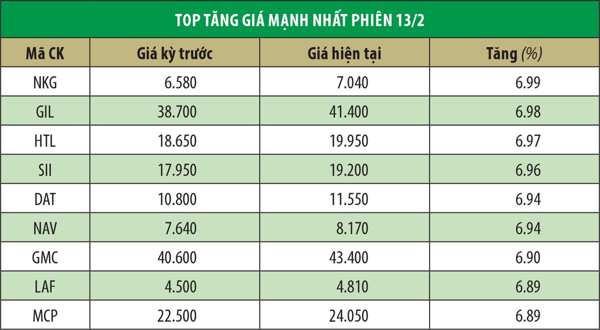Kết phiên giao dịch 13/2, nhịp tăng điểm mạnh kéo dài sang ngày thứ 3 liên tiếp với thanh khoản tiếp tục duy trì ở mức cao, tương đương phiên trước đó. Số cổ phiếu tăng điểm tiếp tục áp đảo số mã giảm điểm. Đây là tín hiệu ban đầu để kỳ vọng, dòng tiền sẽ còn lan tỏa trên diện rộng và thị trường vẫn còn biên độ tăng trong nửa đầu năm 2019.