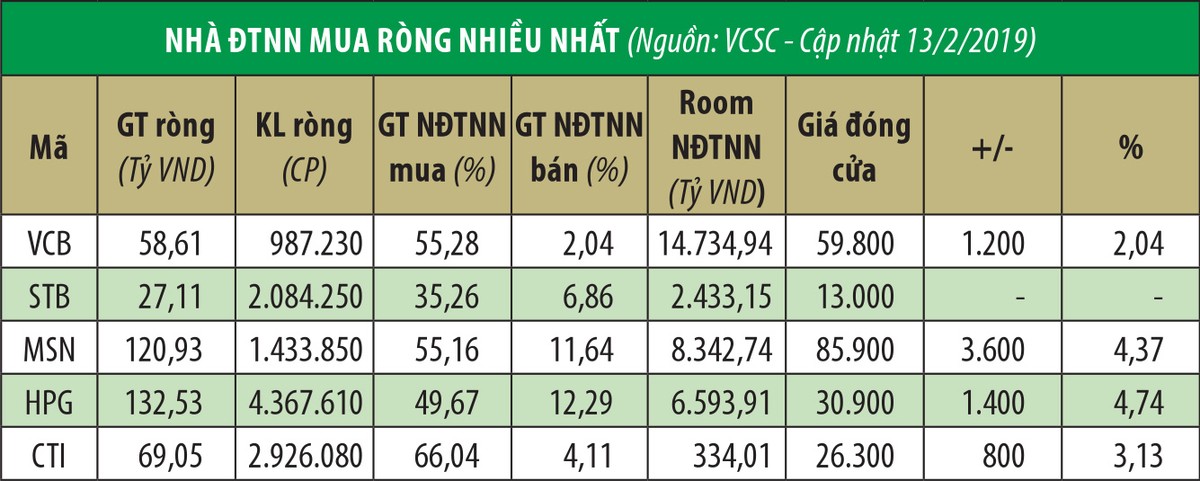 Dòng vốn ngoại cũng đang mua ròng trở lại. Đặc biệt, thường quý đầu năm, khối này sẽ mua ròng lớn - đây được kỳ vọng là yếu tố hỗ trợ thị trường chung. Tính từ đầu năm 2019 tới nay, khối ngoại đã mua ròng khoảng 2.000 tỷ đồng trên toàn thị trường (bao gồm HOSE, HNX và UPCoM).