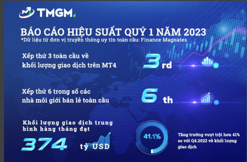 Đại diện TMGM chia sẻ: “Sự thành công trong quý 1/2023 cho thấy chiến lược kinh doanh vì khách hàng mà TMGM luôn kiên trì suốt những năm qua đã gặt hái được quả ngọt, bất chấp kinh tế vĩ mô còn nhiều thách thức. Bởi phương châm của TMGM là “giao dịch thị trường toàn cầu” bằng cách xây dựng hệ sinh thái tài chính mở và minh bạch cùng công nghệ nội bộ tiên tiến của chính TMGM, cho phép chúng tôi đưa ra những dự đoán tài chính hiệu quả dựa trên phân tích chỉ số kinh tế toàn cầu và khu vực, cũng như xây dựng hệ thống giao dịch tốc độ, chuẩn xác và mượt mà trên nhiều ngôn ngữ khác nhau, tối đa sự thuận tiện cho các nhà đầu tư”.