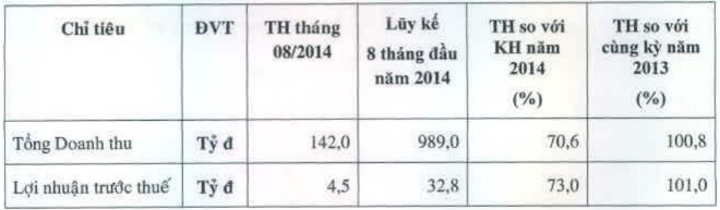 (ĐTCK) CTCP Thương mại xuất nhập khẩu Thiên Nam (mã TNA - HOSE) công bố thông tin kết quả hoạt động kinh doanh tháng 8 năm 2014.