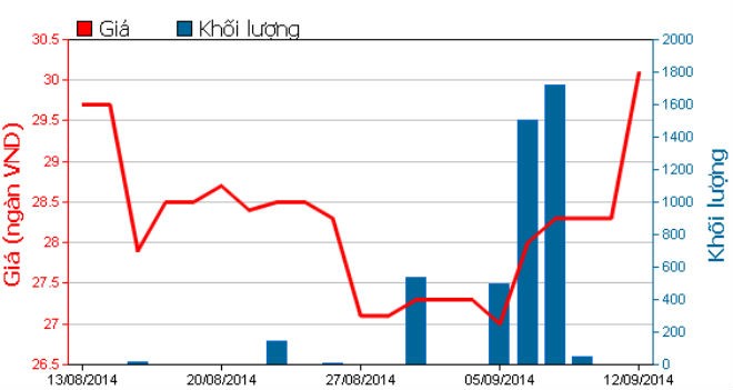 Đóng cửa phiên 12/9, cổ phiếu TNA tăng mạnh 1.800 đồng (+6,4%) lên 30.100 đồng/cổ phiếu và chỉ có vỏn vẹn 10 cổ phiếu được khớp lệnh.