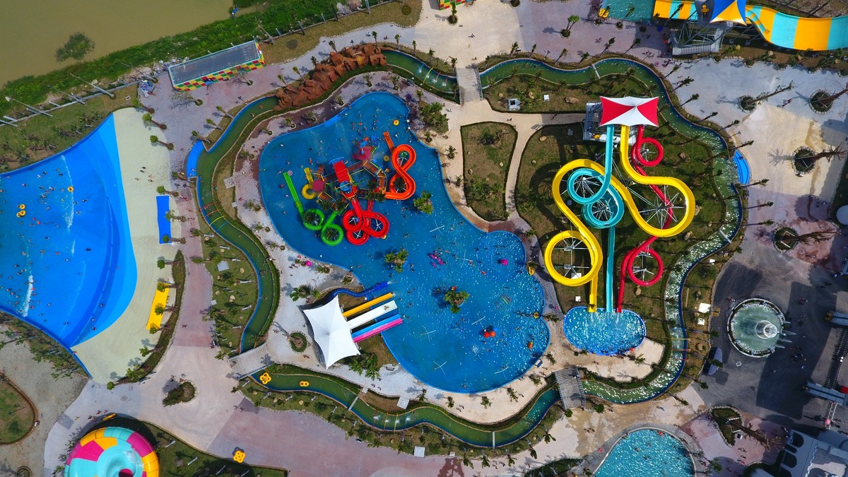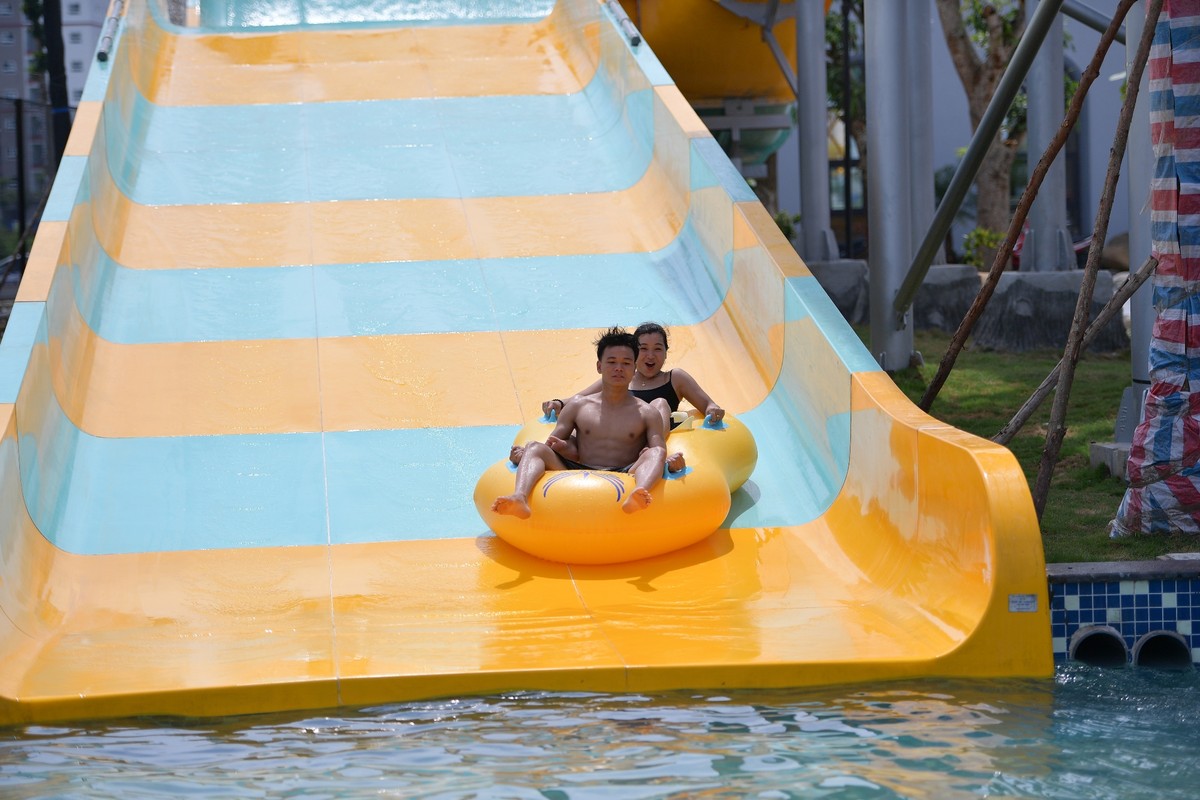 Công viên nước có 9 hạng mục trò chơi mạo hiểm, tốc độ như đường trượt 4 làn, đường trượt xoắn ốc, vòng xoáy khổng lồ, sông lười, hố đen vũ trụ, máng trượt, khu tạo sóng nhân tạo…