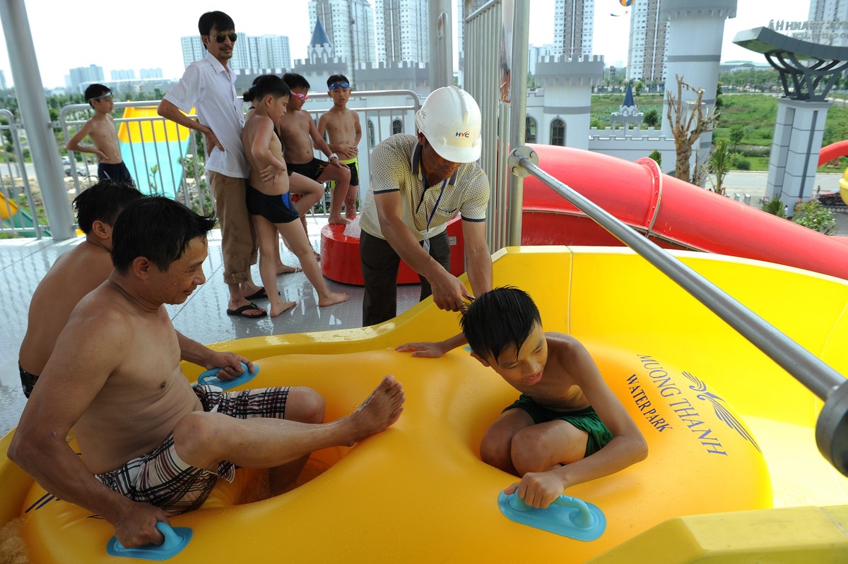 Với mỗi trò chơi máng trượt, du khách phải mang phao từ dưới lên...