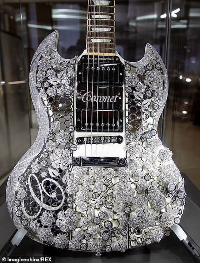 Đàn ghi-ta phủ kim cương của công ty ông Shum sản xuất (Ảnh: Imaginechina).