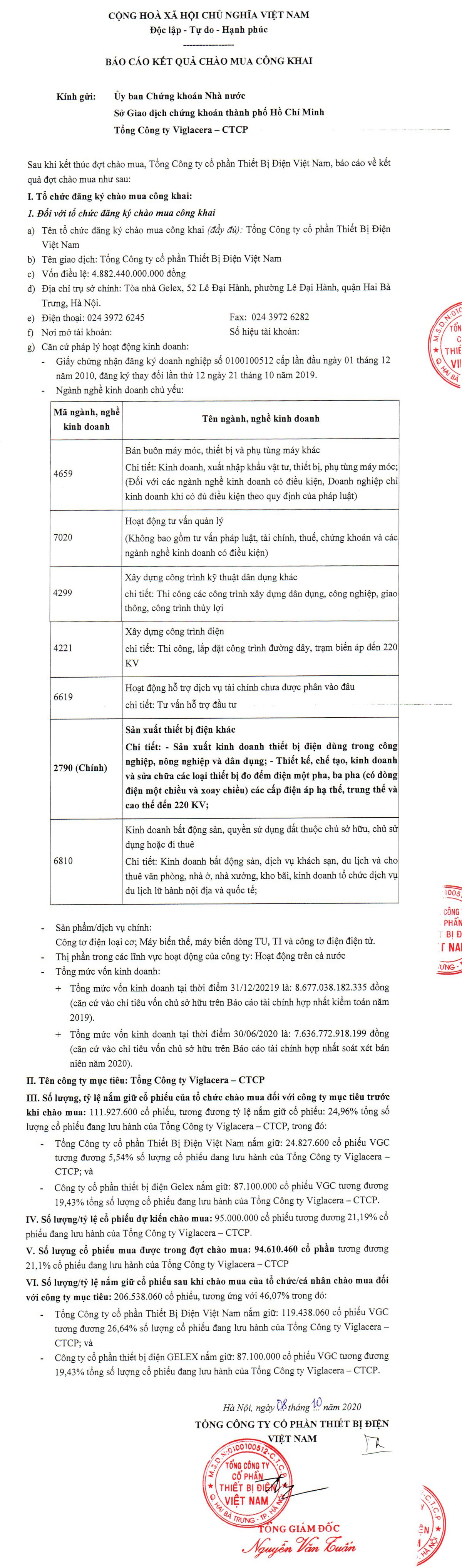 Gelex chào mua thành công 94,61 triệu cổ phiếu VGC, tiến sát mốc sở hữu 46,15% tại Viglacera 08/10/2020 17:21