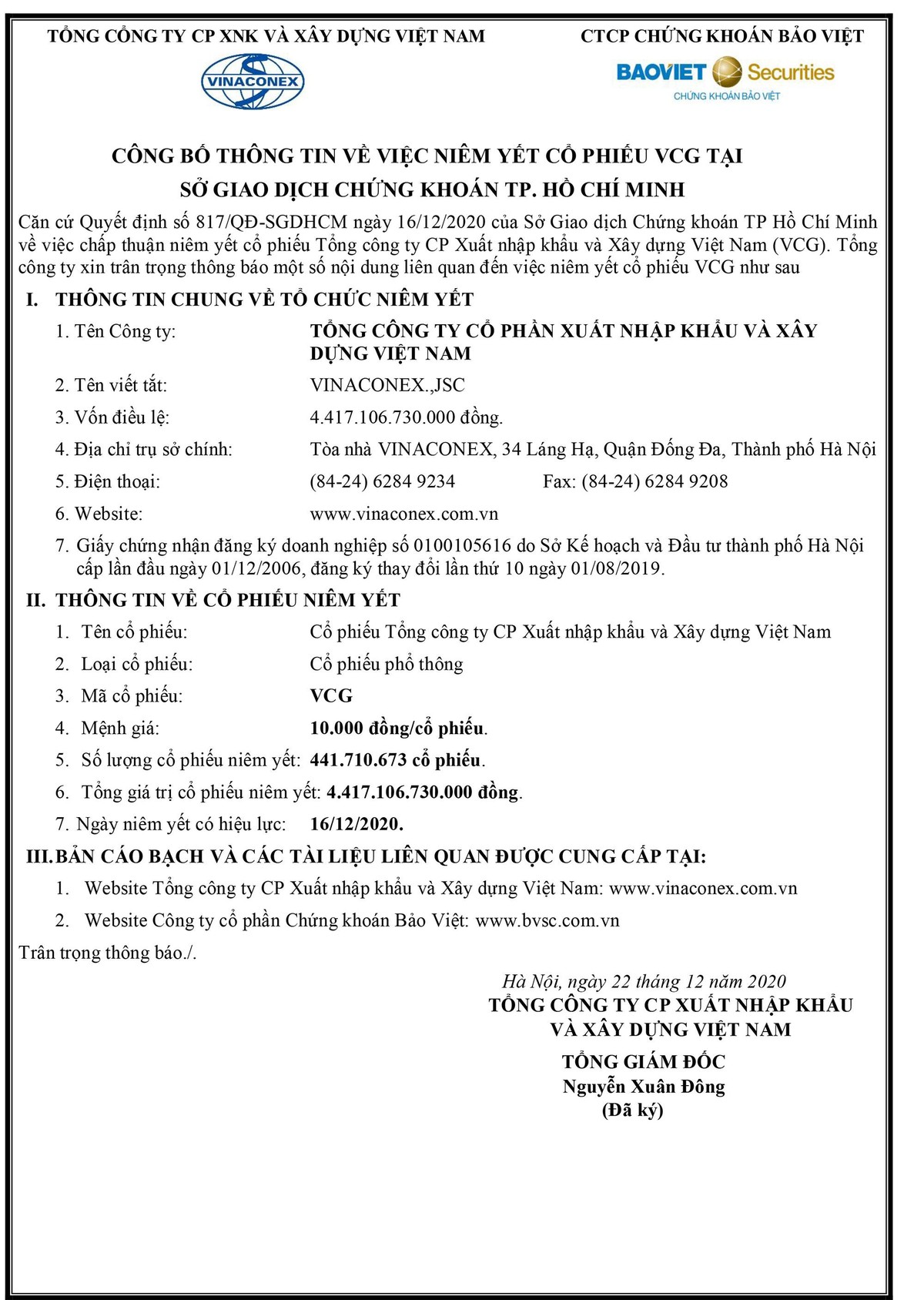 Tin liên quan Công ty cổ phần Tập đoàn Masan thông báo chào bán trái phiếu ra công chúng 20/12/2020 07:00 Công ty cổ phần Giống bò sữa Mộc Châu thông báo phát hành cổ phiếu ra công chúng 16/12/2020 09:58 Công ty cổ phần KOSY thông báo phát hành cổ phiếu ra công chúng 16/12/2020 07:00 Công ty cổ phần Đầu tư và Xây dựng số 18 thông báo phát hành cổ phiếu ra công chúng 02/12/2020 10:53 Từ khóa Tổng Công ty cổ phần Xuất nhập khẩu và Xây dựng Việt Nam Vinaconex VCG