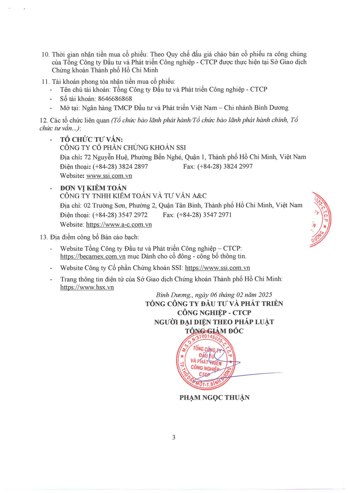 Tổng công ty Đầu tư và Phát triển công nghiệp - CTCP (BCM) thông báo chào bán cổ phiếu ra công chúng (kỳ 1) 06/02/2025 18:00