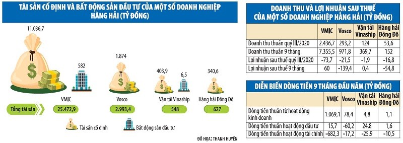 Bối cảnh tương tự cũng được ghi nhận tại nhiều doanh nghiệp hàng hải khác. Công ty cổ phần Vận tải biển Việt Nam (Vosco, mã VOS) phải chấp nhận lợi nhuận sau thuế hợp nhất quý III/2020 âm 21,5 tỷ đồng, lỗ lũy kế 9 tháng đầu năm đẩy lên mức gần 139,5 tỷ đồng.