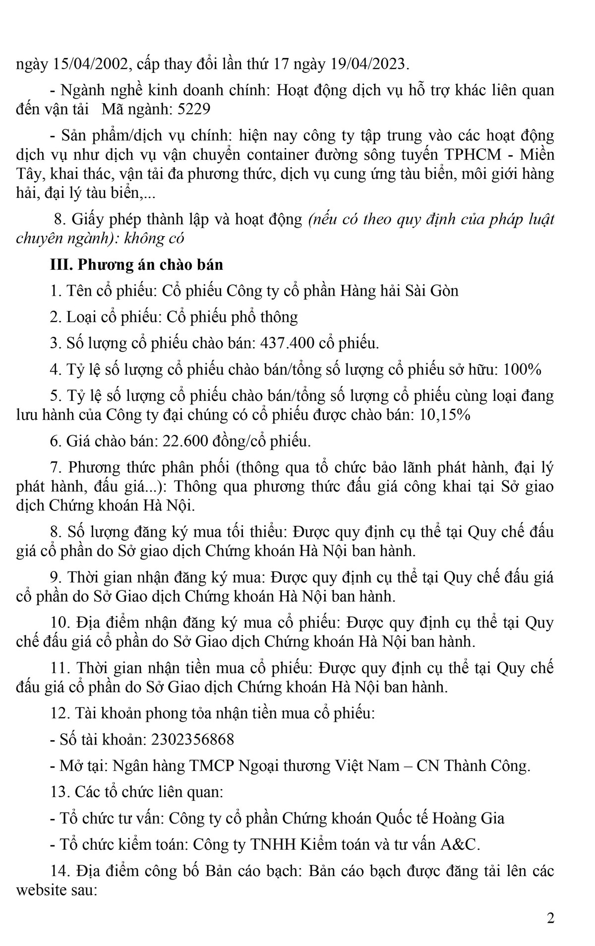 Tổng công ty Hàng hải Việt Nam (VIMC) thông báo chào bán cổ phiếu Công ty cổ phần Hàng hải Sài Gòn ra công chúng 22/12/2023 07:00