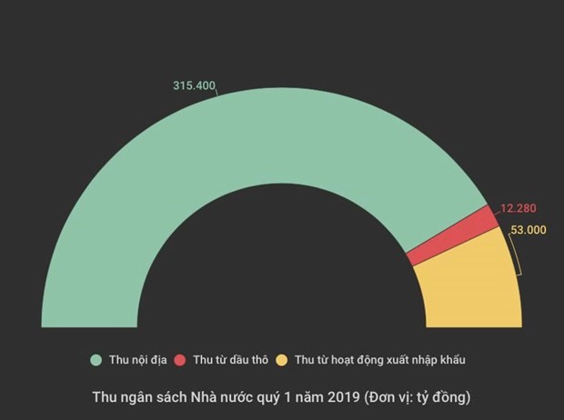 Trong tổng thu trên, theo thống kê, thu nội địa cả quý 1 đạt 315.400 tỷ đồng, bằng 26,9% dự toán, tăng 13,8% so cùng kỳ năm 2018. Ước tính cả nước có 49/63 địa phương thu nội địa đạt tiến độ dự toán (trên 24%).