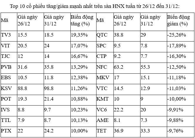 Trên sàn HNX, cổ phiếu PVB trong tuần cuối cùng của năm 2025 đã ghi nhận tuần thứ hai liên tiếp thuộc nhóm tăng tốt nhất sàn, sau khi tuần trước đó tăng hơn 13%.