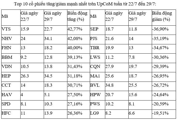 Trên UpCoM, các cổ phiếu tăng, giảm mạnh nhất đều ít có diễn biến đáng chú ý, khi đa số đều thanh khoản thấp, thậm chí không ít còn trắng giao dịch trong các phiên.