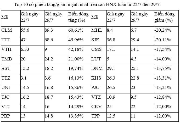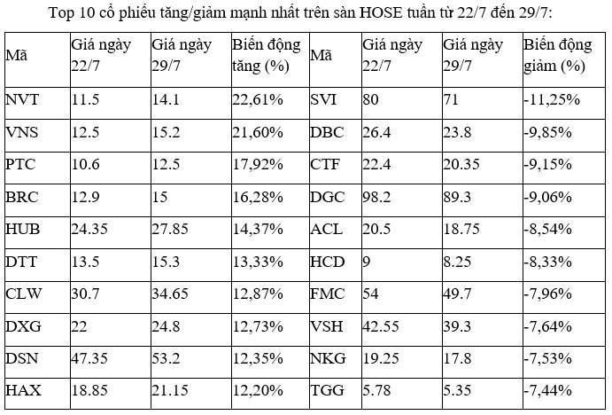 Top 10 cổ phiếu tăng/giảm mạnh nhất tuần: Các cổ phiếu có kết quả kinh doanh quý II là tâm điểm