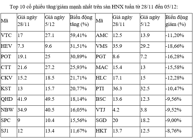 Trên sàn HNX, cổ phiếu VTC của CTCP Viễn thông VTC tiếp tục có tuần thứ hai liên tiếp là cổ phiếu tăng tốt nhất sau khi tăng hơn 57% trong tuần trước đó.