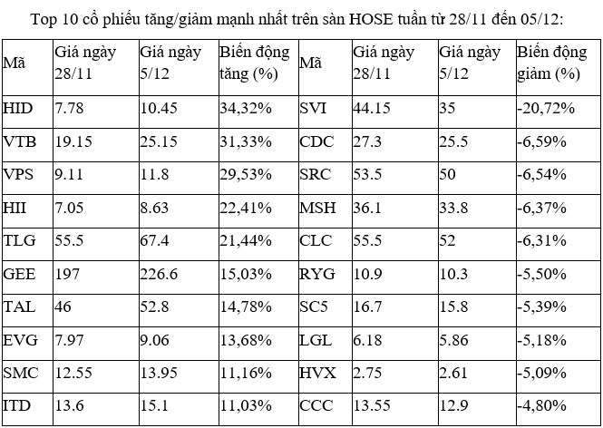 Top 10 cổ phiếu tăng/giảm mạnh nhất tuần: Các cổ phiếu có thông tin thoái vốn, M&A thu hút nhà đầu tư
