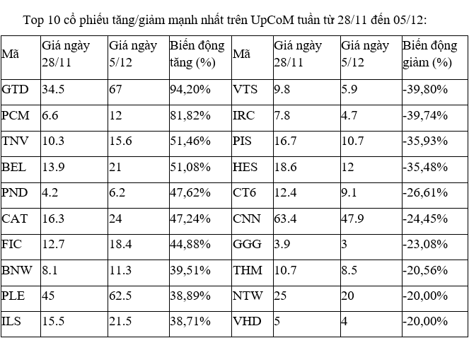 Trên UpCoM, cổ phiếu GTD của CTCP Giầy Thượng Đình có thêm một tuần tăng mạnh và dẫn đầu đà tăng, sau khi tăng gần 100% trong tuần trước đó.