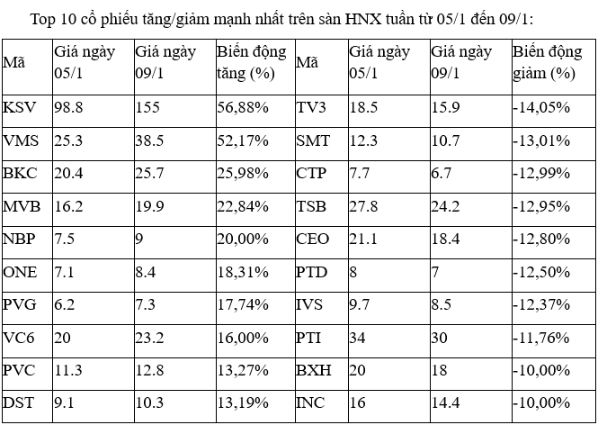 Trên sàn HNX, nhóm các cổ phiếu khoáng sản, khai thác, nguyên vật liệu VKC, MVB, KSV ghi nhận mức tăng vọt.