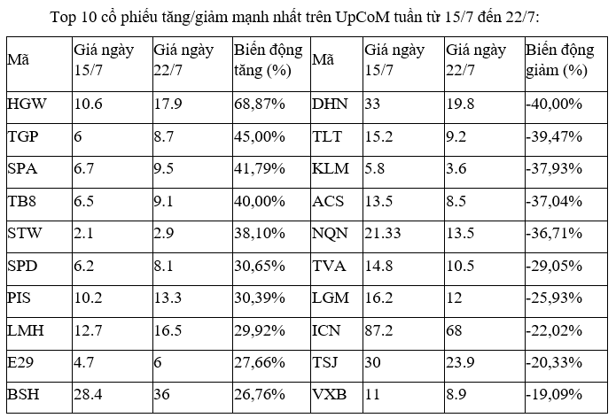 Trên UpCoM, trong số các cổ phiếu tăng, giảm mạnh nhất, đáng chú ý có lẽ chỉ đến từ LMH, khi có thanh khoản tương đối tốt trong các phiên giao dịch, giá cổ phiếu hiện đã vượt mức đỉnh lịch sử tại 16.500 đồng.
