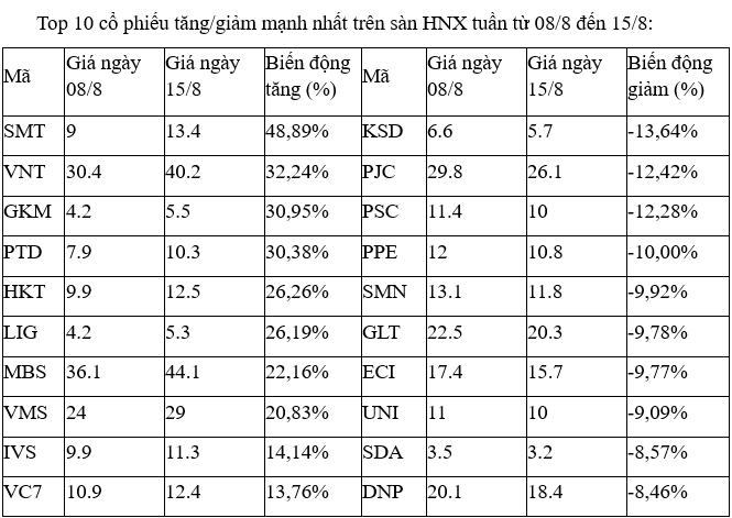 Trên sàn HNX, nhóm cổ phiếu vừa và nhỏ, có tính đầu cơ cao chiếm sóng khi nhiều cổ phiếu góp mặt trong top các mã tăng cao nhất như IVS, VC7, LIG, HKT, GKM, SMT.