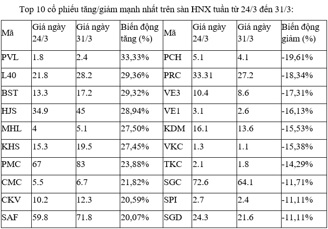 Top 10 cổ phiếu tăng/giảm mạnh nhất tuần: Cổ phiếu công ty chứng khoán khởi sắc
