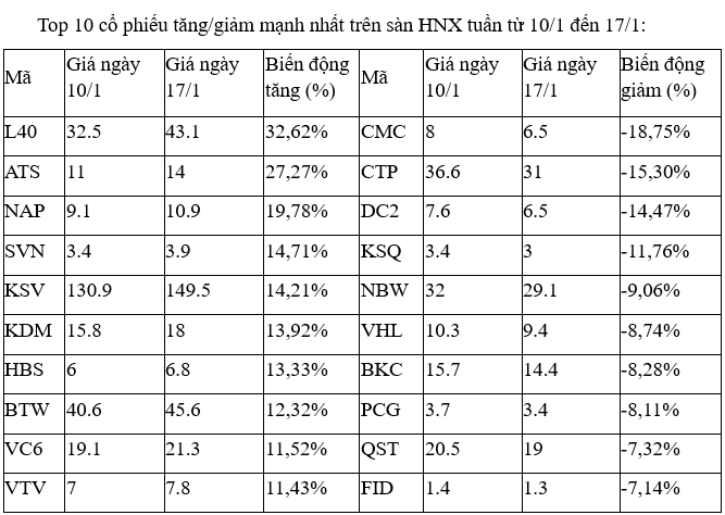 Trên sàn HNX, cổ phiếu vốn hóa lớn nhất là KSV có thêm một tuần hồi phục mạnh và ghi nhận tuần thứ hai liên tiếp lọt vào top những cổ phiếu tăng cao nhất sàn.