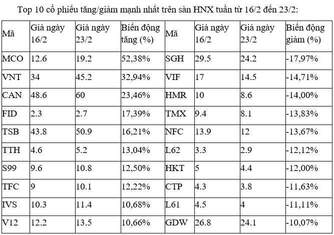 Trên sàn HNX, cổ phiếu MCO tăng vọt, bỏ xa phần còn lại và đã có liên tiếp 9 phiên tăng, trong đó, 7 phiên là tăng kịch trần. Thanh khoản cũng gia tăng so với thời gian trước đó, dù chỉ khớp lệnh trung bình trên dưới 0,2 triệu đơn vị khớp lệnh/phiên và gần đây cũng không có thông tin nào mới đáng kể.