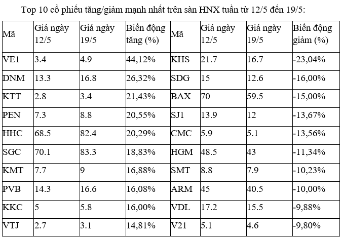 Trên sàn HNX, cổ phiếu VE1 có thêm một tuần tăng mạnh sau khi đã +34,2% trong tuần trước, nhưng thanh khoản trong các phiên khá thấp, chỉ vài chục nghìn đơn vị khớp lệnh/phiên.