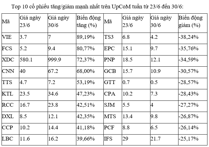 Tuần này, cổ phiếu được quan tâm nhất trên UpCoM có lẽ vẫn là XDC, khi giá cổ phiếu đã tiến tới ngưỡng 1 triệu đồng/cổ phiếu, cao nhất toàn thị trường. Giao dịch vẫn tiếp tục ở mức thấp với chỉ vài trăm đơn vị khớp lệnh/phiên.