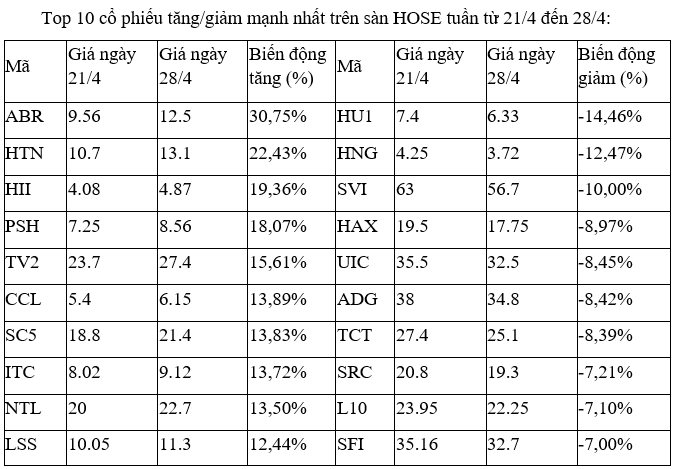 Trên sàn HOSE, cổ phiếu ABR tuần này tăng mạnh nhất, tuy nhiên, giao dịch lại khá thưa thớt, với chỉ vài nghìn đơn vị khớp lệnh phiên.