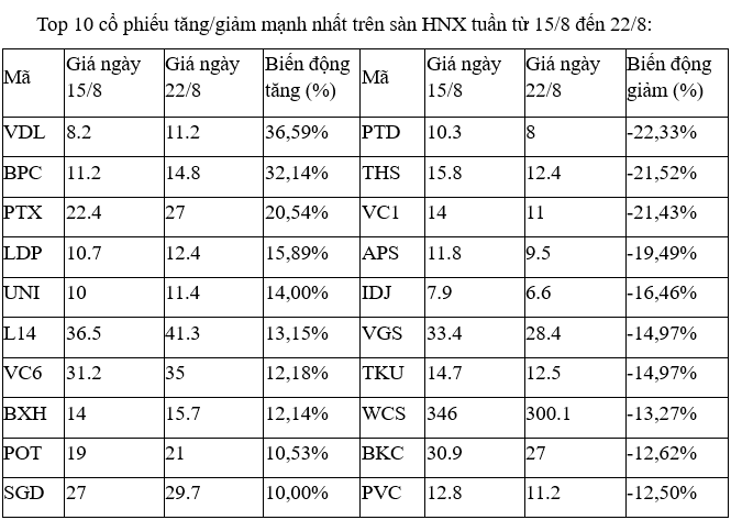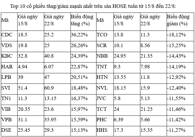 Top 10 cổ phiếu tăng/giảm mạnh nhất tuần: Một số mã ngân hàng vẫn duy trì đà tăng mạnh
