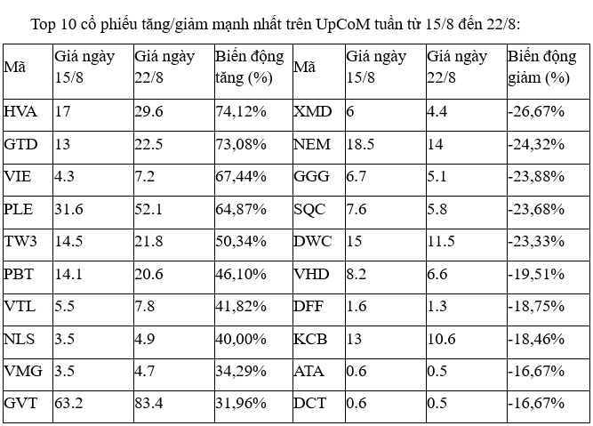 Trên UpCoM, cổ phiếu HVA có tuần thứ hai liên tiếp lọt vào nhóm các cổ phiếu tăng mạnh nhất, thanh khoản trung bình 0,2 triệu đơn vị khớp lệnh/phiên. Tuần trước, cổ phiếu này tăng hơn 22%.