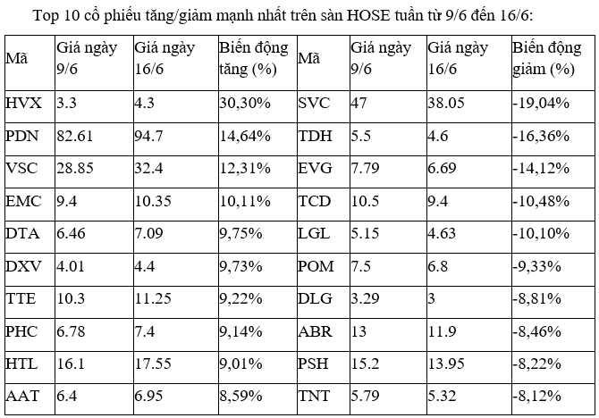Trên sàn HOSE, nhiều cổ phiếu chỉ còn duy trì được mức tăng nhẹ do áp lực chốt lời mạnh dần lên, ngoại trừ cổ phiếu HVX vẫn giữ được mức tăng tới 30%, tuy nhiên, cổ phiếu này vẫn chỉ có thanh khoản thấp trong các phiên.