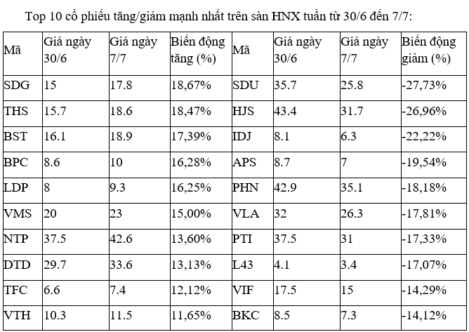 Trên UpCoM, các cổ phiếu tăng, giảm mạnh nhất tuần này đều giao dịch thưa thớt, không có diễn biến mới nào đáng kể.