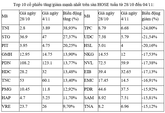 Ở chiều ngược lại, cổ phiếu thép NKG giảm sâu, khi cùng nhóm cổ phiếu thép bị bán khá mạnh trong tuần qua, ảnh hưởng bởi kết quả kinh doanh quý III/2022 lao dốc, với khoản lỗ ròng hơn 400 tỷ đồng, trong khi doanh thu giảm gần 1,7 lần so với cùng kỳ.
