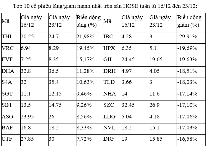 Cổ phiếu GIL có phiên “bull trap” vào 21/12 tăng 6,8%, còn lại 6 phiên từ 15/12 đến 23/12 đều giảm sàn. Cổ phiếu này chịu tác động từ việc đệ đơn kiện gã khổng lồ Amazon đòi khoản bồi thường 280 triệu USD.